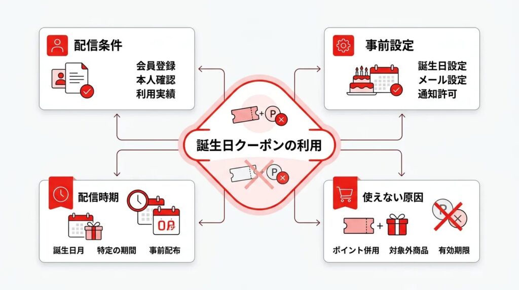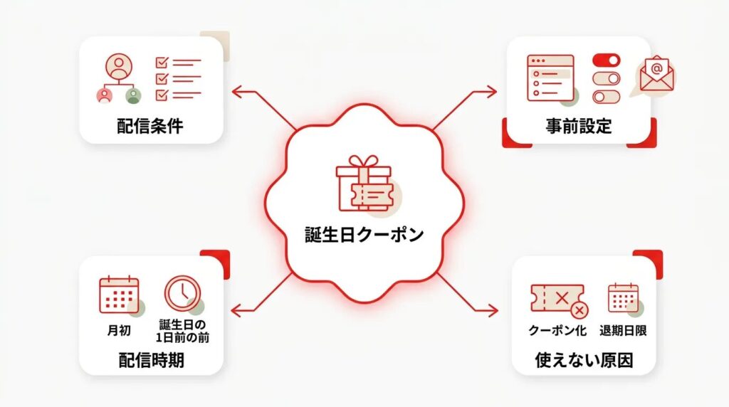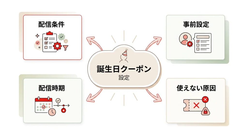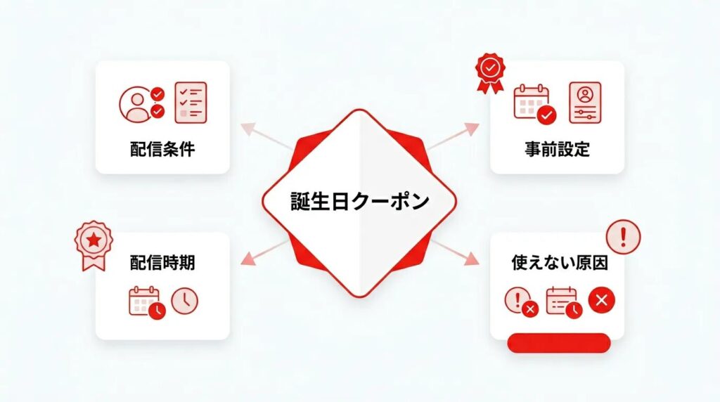この記事では、誕生日クーポンの条件、届かない時の原因、使えない時の見方まで、初めてでも追いやすい順番でまとめます。