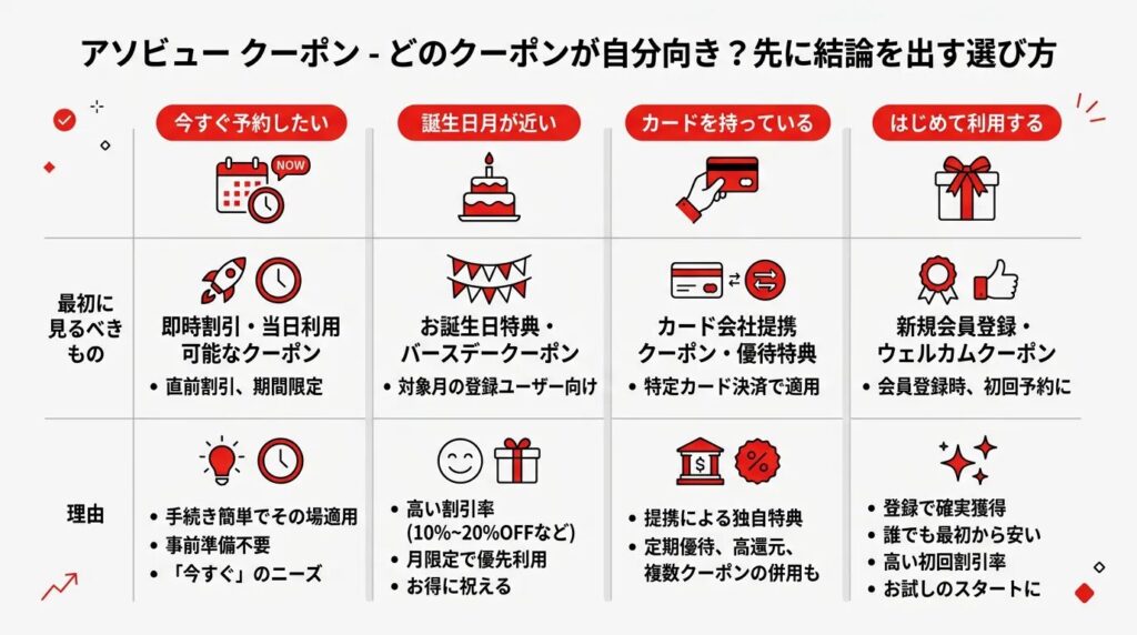 どのクーポンが自分向き?先に結論を出す選び方