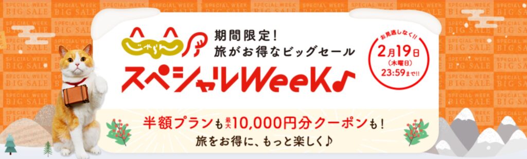 | 3,スペシャルウィーククーポン | 最大6,000円 | 年4〜5回の不定期開催 | 不可(1予約1枚) |