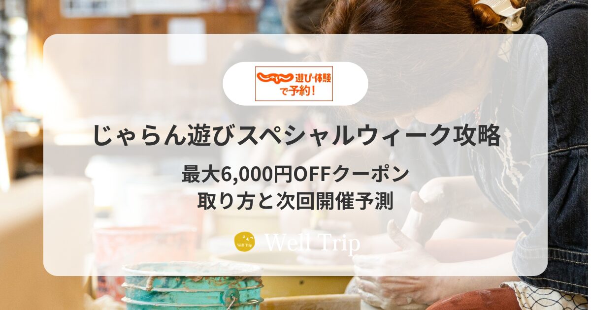 じゃらんスペシャルウィークは年5回ほど開催される大型セールで、遊び体験向けには最大6,000円OFFクーポンが配布されます。