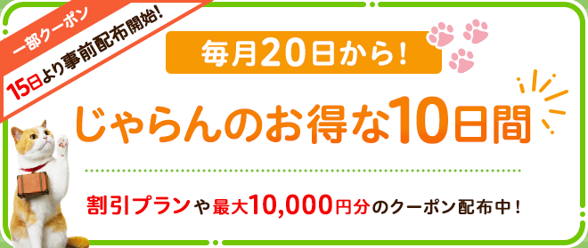 お得な10日間(毎月20〜29日・最大3万円)クーポン