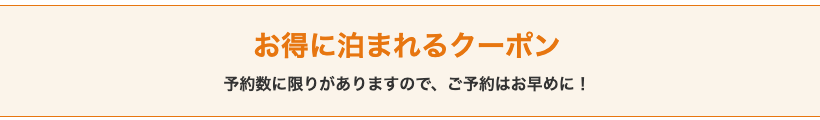 施設が独自に発行するクーポン枠。通常・特別・パック・地域とは別枠として併用可能で、宿側のキャンペーン期間に合わせて配布されます。プラン詳細ページの「クーポン」タブで確認できます。