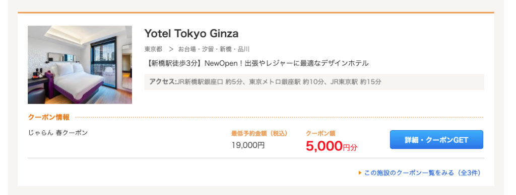 じゃらん クーポンの宿泊予約系(通常・特別・施設限定)