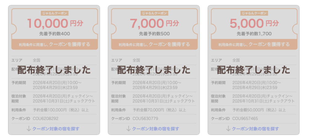 通常じゃらんクーポン(最大2万円・全施設対象)