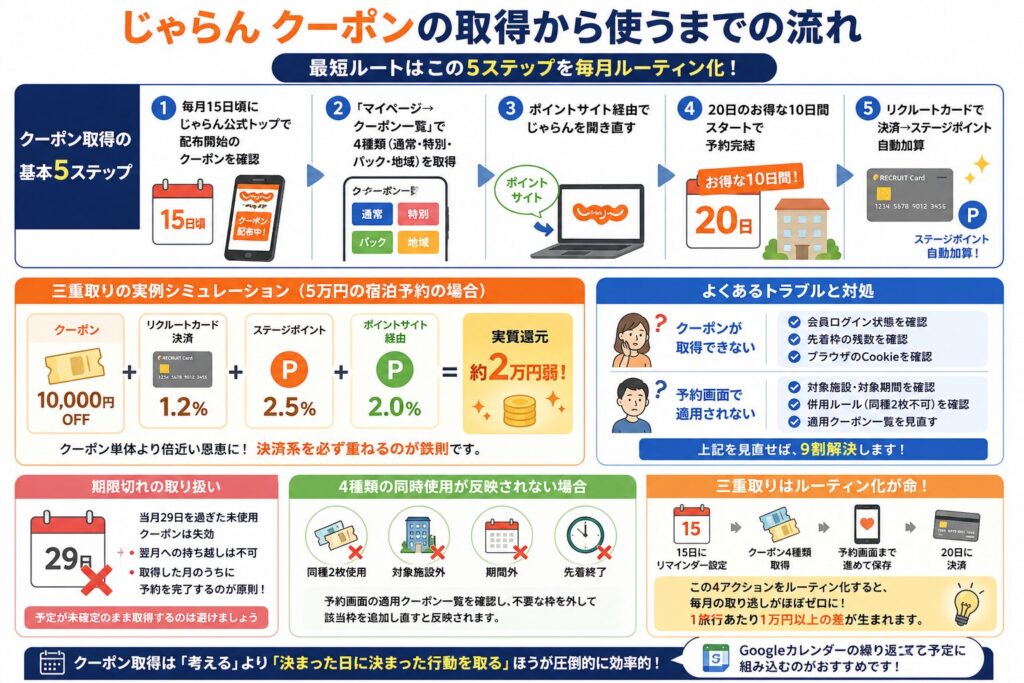 じゃらん クーポンの取得手順・三重取り・トラブル対処(横断ユーティリティ)
