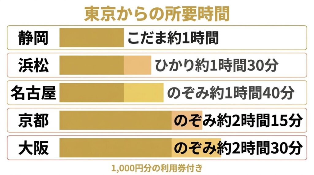 • 設定区間: 首都圏(東京・品川・新横浜)〜名古屋・京都・大阪・奈良など