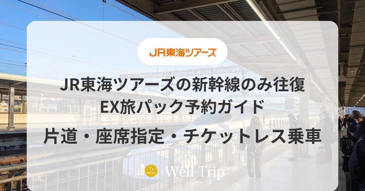 出張や帰省でのぞみ・ひかりに乗りたいけど、JR東海ツアーズで新幹線のみの予約はできるのか。結論から言うと、新幹線「のみ」の単独予約はできませんが、EX旅パック(新幹線+ホテルのセット商品)を使えばのぞみ利用でもお得に手配できます。EX旅パックの仕組み・スマートEXとの違い・座席指定・チケットレス乗車まで、新幹線予約の全体像をまとめました。