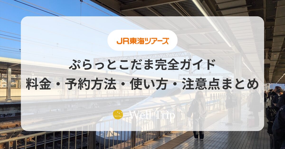 ぷらっとこだまは東海道新幹線のこだま号に格安で乗れるJR東海ツアーズの旅行商品です。通常のきっぷより約2割安く、グリーン車もプラス約1,000円で利用可能。料金・予約方法・乗車当日の流れ・設定除外日・乗り遅れ時のルールまで、ぷらっとこだまを使う前に知っておきたい情報をすべてまとめました。
