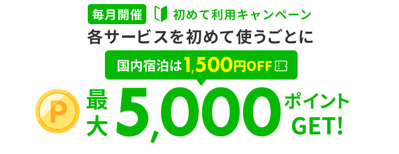 初めて利用キャンペーン(500pt~最大1,500pt)