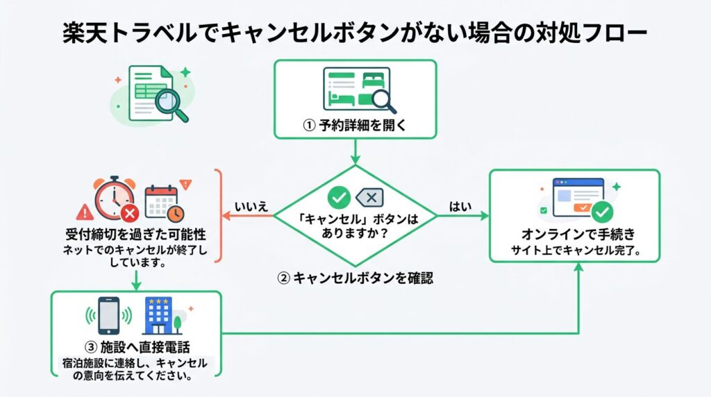 キャンセル手続きに不安が残る場合や、オンラインで解決できなかった場合は、施設への直接連絡または楽天トラベルへの問い合わせを活用してください。