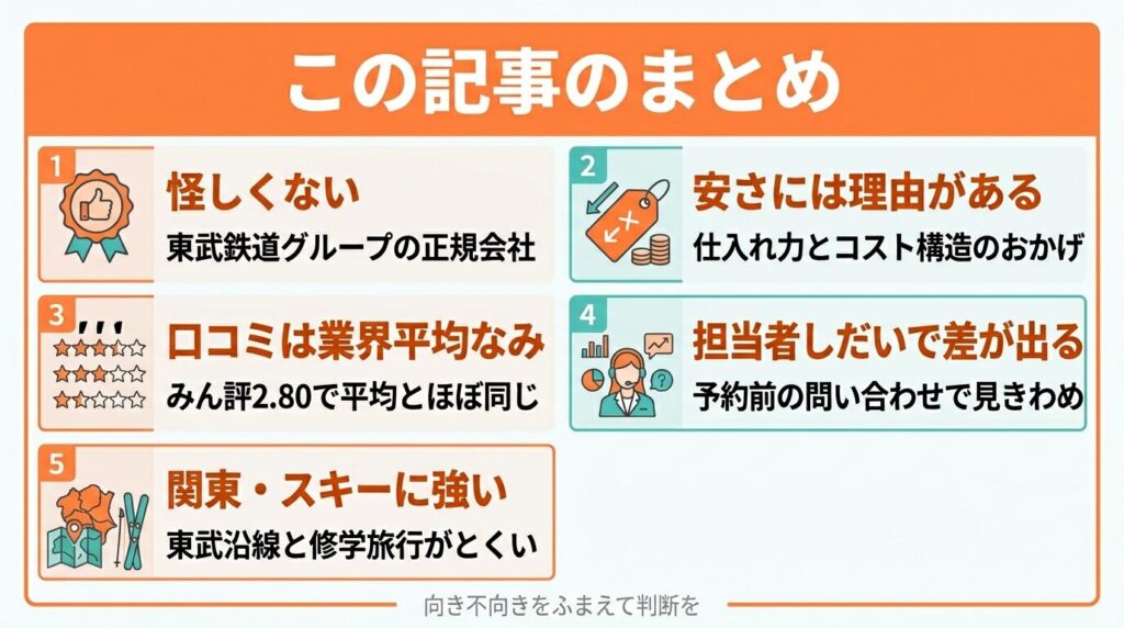 東武トップツアーズ まとめ — 怪しくない、でも向き不向きはある