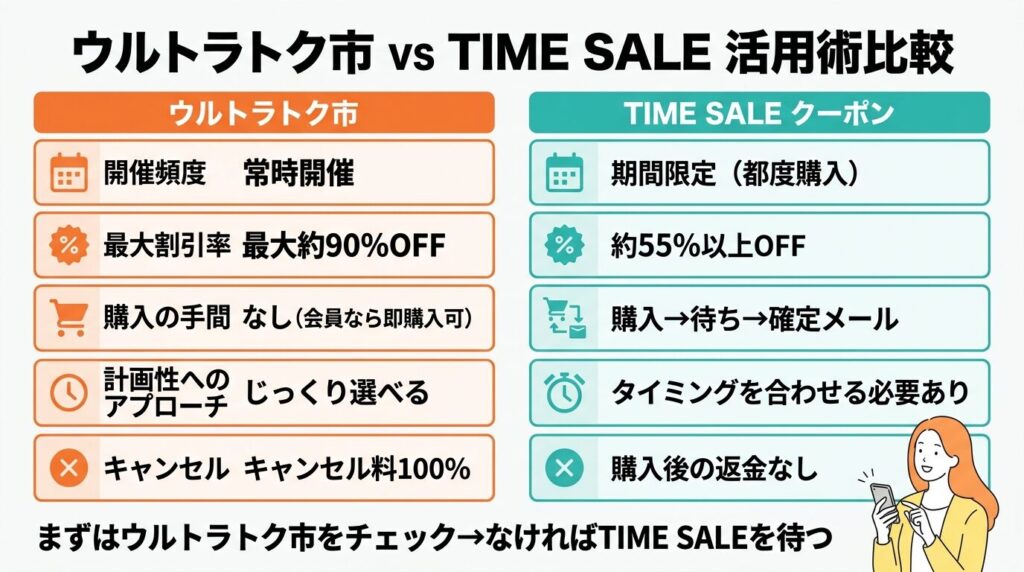 ウルトラトクー市の開催情報や、最大91%OFFを狙う方法については詳細記事もあります。