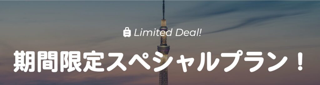 - スペシャルプラン: 20~70%以上の割引プランが期間限定で掲載