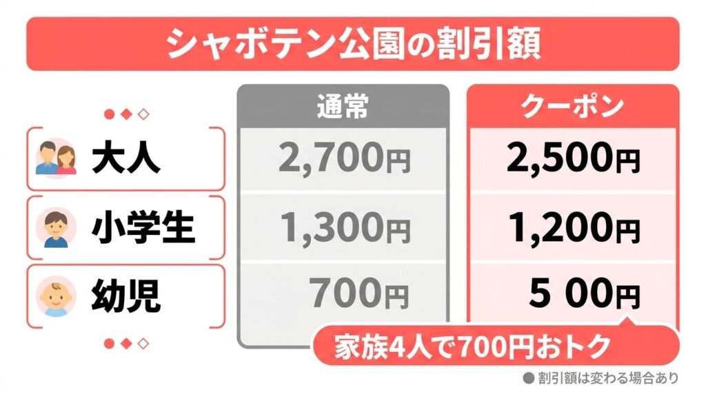 • 割引額は施設によってまちまち: 大幅な割引というよりは、数百円程度の割引が中心です